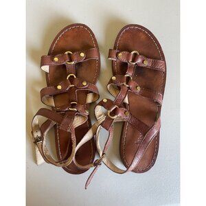 Cole Haan 9.5B Gladiator Sandals Ankle Strap Brown Gold Leather