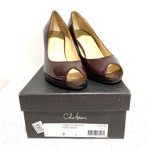 Cole Haan 9B Carma OT Air Purple Patent Metallic Leather Pump Peep Toe Shoes