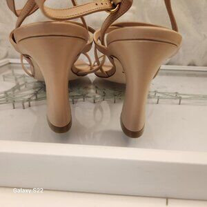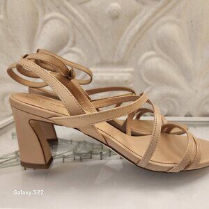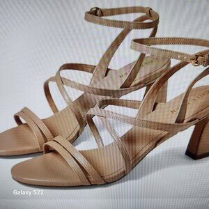 Cole Haan "Addie" Strappy Sandals. NIB. Size 9.5. Leather. NIB/Original box. Lid is missing and box has damage. No rips/stains/tears/peeling. One indent on the side of one shoe, not a rip or tear through leather. One bottom has very scant amount of dirt markings, so assuming a floor model. See final 2 pictures. Smoke free home. No odors. All offers are welcome. Thank you!