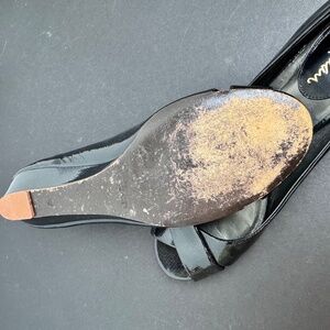 Cole Haan Air Elly Criss-Cross Black Patent Peep-Toe Wedge Shoes, Size 8