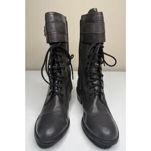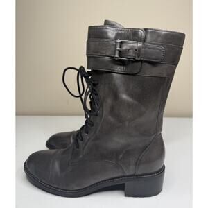 * Item details: Cole Haan Air Joey Combat Boot Womens 8B Dark Grey Leather Side Zip Buckle Strap Lae Up Block Heel Short Boot