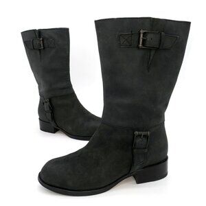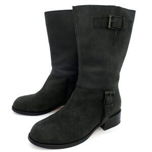 Cole Haan Air Leora Mid Calf Black Leather Moto Boots Buckles Women's 7B