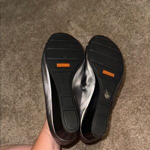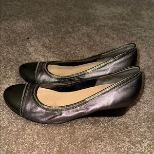 Cole Haan Air Milly Slip On Capped Silver Wedge Shoes with Metallic Finish 9.5