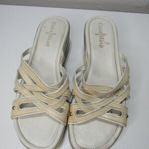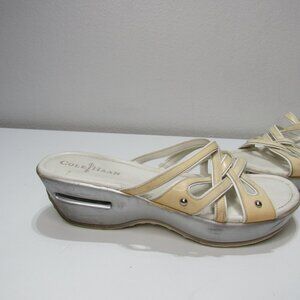 Cole Haan Air Shoes Womens 8 B Silver Cream Peep Toe Wedge Heels Sandals Y2K