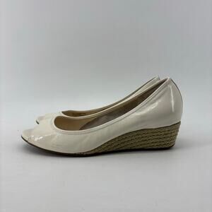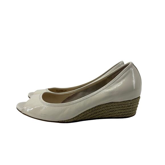 Cole Haan Air Tali Peep Toe Wedge Ivory Patent Leather Espadrille Sole