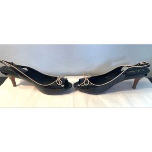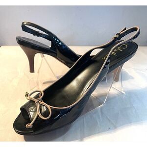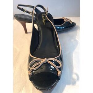 Cole Haan Air Talia Otbow black patent women's size 10.5 Medium peep toe sho. Slip On Slingback Heels. Leather Lined Insole Leather Outsole. Excellent Preowned Condition.