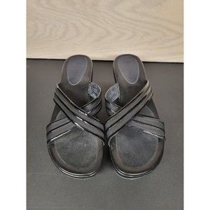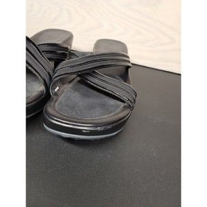 Excellent Condition, Cole Haan Nike Air Women's SZ 11 B Sandals Platform Wedge Slip On Black Leather. Shipped USPS Mail.