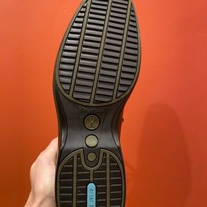 These shoes are quite a unique style- not for everyone but very comfortable with a good tight heel. Black leather, with a special “Nike Air” sole. Shoes are brand new, with original box. There are red and tan laces, however regular black laces are also included in the box.