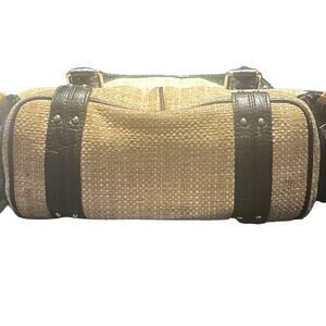 • Fabric lining with zippered pocket inside. 4" drop handles.