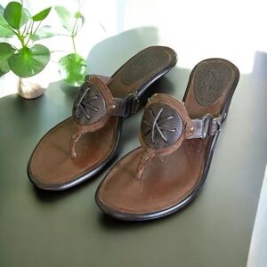 Cole Haan Antonia Brown Leather Sandals with Medallion Detail