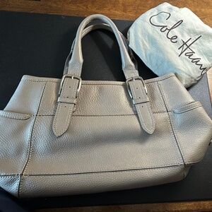 Beautiful Cole Haan bag in excellent condition. Clean interior. Nice sturdy leather bag. Pewter color.
