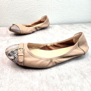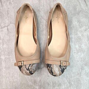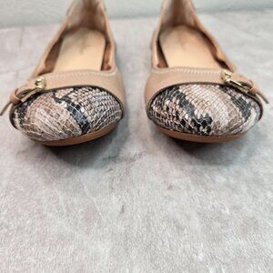 Cole Haan Ballet Flats Size 10 Tan Snake Print Preppy Dressy Ballerina Shoes