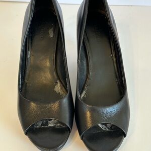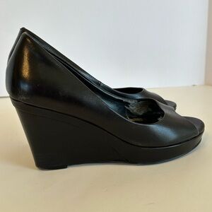 Cole Haan Black 100% Leather Peep Toe Platform Wedge Career Heels Sz 8M