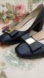 Cole Haan Black Block Heels with Bow and Gold Plaque Accent Women's size 9.5