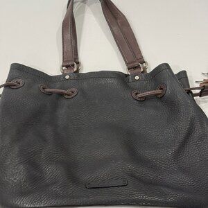 Cole Haan Black Brown Pebbled Leather Tassel Drawstring Bucket Bag Purse