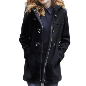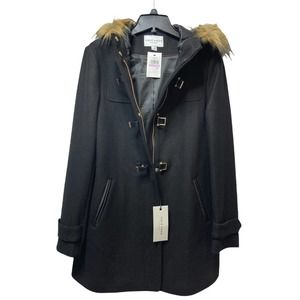 Cole Haan Black Buckle-Accent Wool-Blend Hooded Coat size 6