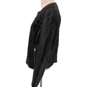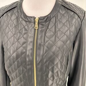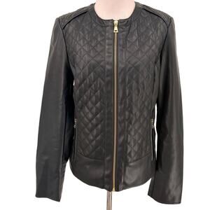 Cole Haan Black Collarless Quilted Faux Leather Jacket Size Medium