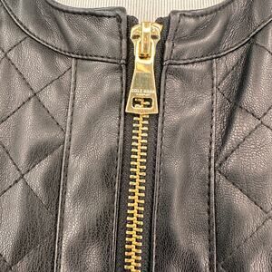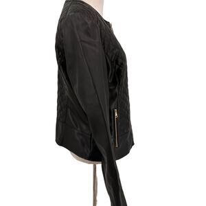 Cole Haan Black Collarless Quilted Faux Leather Moto Jacket Size Medium