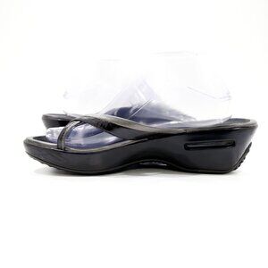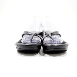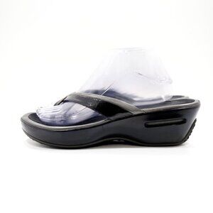 Cole Haan Black & Gray Leather 2" Wedge Heel Thong Sandals - 11