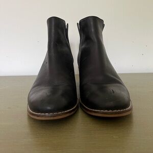 Cole Haan Black Leather Ankle Booties with Wooden Block Heel Moto Boots Slip On