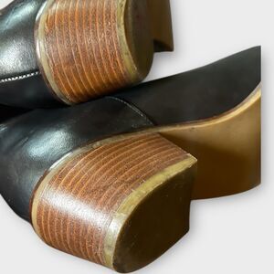 Timeless and versatile, these Cole Haan ankle boots in size 6.5 feature soft black leather with a sleek, minimal silhouette and contrast stitching for added detail. Gently worn with some interior wear (see photos), they’re perfect for elevating everyday outfits with comfort and polish.