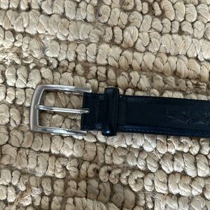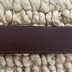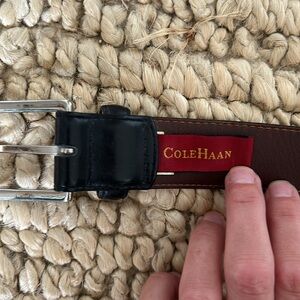 Cole haan black leather belt. Pro owned but still a lot of life left. Classic black belt with small inset woven detail on the leather strap.