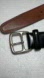 Sleek black leather belt. Features a silver buckle. Ideal for versatile styling.
