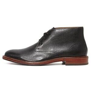 These Cole Haan Chukka Boots feature a sleek black leather upper paired with a contrasting brown sole, offering a sophisticated yet versatile look. The ankle-high design and minimalist stitching make them perfect for both formal and casual occasions. With a rounded toe and durable construction, these boots ensure comfort and style.