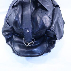 This Cole Haan Duffel has a large zippered interior space with inside zippered pocket. There are also two medium size front compartments with snapped closures and two small side compartments (perfect for cell phone, wallet, etc.) with snapped closures. There is also one larger slide-in sleeve for laptops.