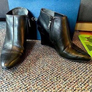 Cole Haan Black Leather Jordyn Wedge Booties Size 8