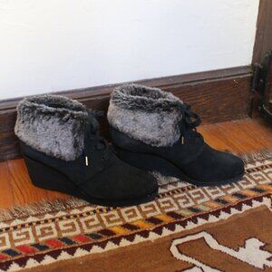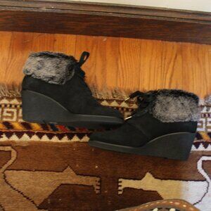Cole Haan Black Leather Lace-up Booties with Fur, Sz 8