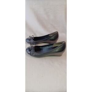 Cole Haan Black Leather Patent Toe Shoes Cushioned Sole Size 8 B Wedge