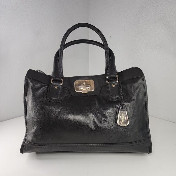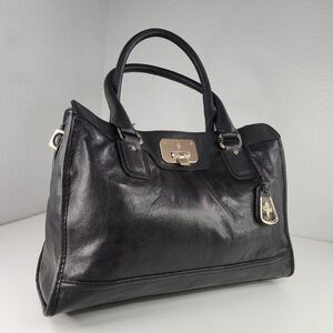 Cole Haan Black Leather Satchel Tote Purse Gold Hardware Double Handles Bag