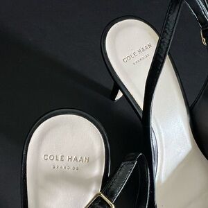 BRAND NEW WITH TAGS! Beautiful COLE HAAN GRAND.OS black leather slingback stilettos. 3 inch heel height. Adjustable strap with gold buckle. No original box.