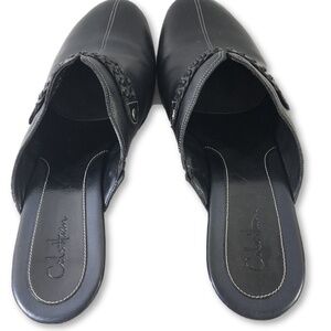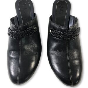 Cole Haan Black Leather Slip On Clogs Mules With Braided Detailing Size 11B