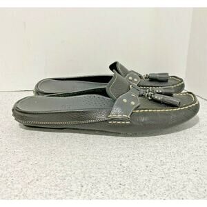Cole Haan Black Leather Slip On Shoes Tassel Loafer Slides Casual Ladies US 7B