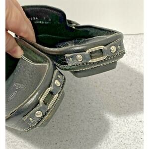 Cole Haan Black Leather Slip On Shoes - the uppers look like tassel loafers in a slide design with silver tone hardware and white top stitching. Moderate wear on the toes & soles (see pics) but the uppers look great - the perfect casual shoe! Ladies US size 7B. In very good pre-owned condition - no significant damage or flaws.