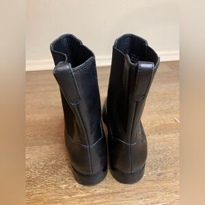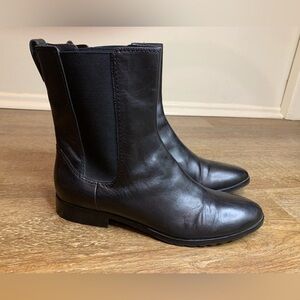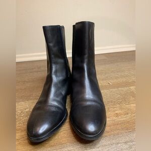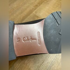Elegant black leather boots by Cole Haan. Features a sturdy sole for comfort.