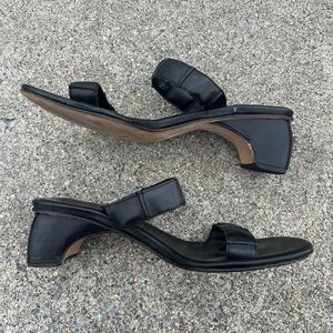 Cole Haan Black Leather Square Slide Open Toe Sandals
