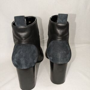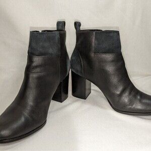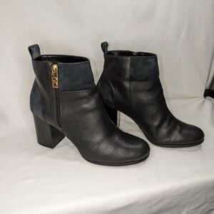 These Cole Haan black leather and suede mid rise boots with gold zipper pulls will go with many of your outfits and finish off or make the look you are looking to make. They are in really good condition with very limited wear on the sole. The boots are a size 6 1/2B.