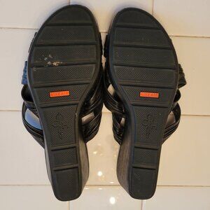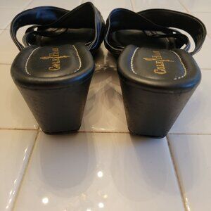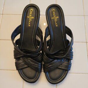 Cole Haan Black Leather Wedge Sandals 8.5B Open Toe Slides