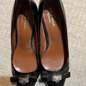 Step out in style with these elegant black patent leather heels from Cole Haan. Perfect for any occasion, these shoes offer both comfort and sophistication.
