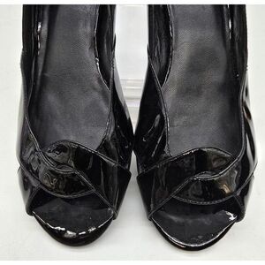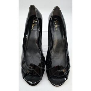 Cole Haan Black Patent Leather Peep-Toe Heels Womens Size 7.5 Elegant Dress Shoe