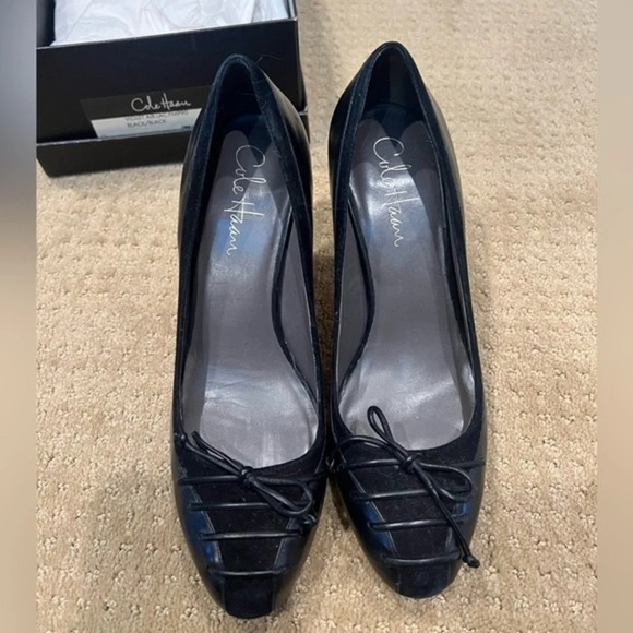Cole Haan Black Pump with Bow, they are leather with suede accents