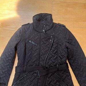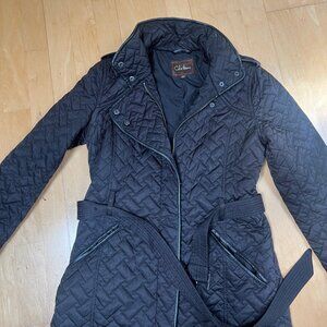 Cole Haan Black Signature Quilt Belted Coat With Lambskin Trim, Size Small