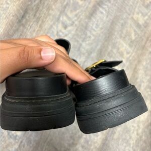 Cole Haan Black Slide Sandals with Gold Buckle
