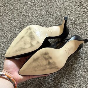 Chic black slingback heels by Cole Haan. Sleek design with adjustable strap. Perfect for any occasion.