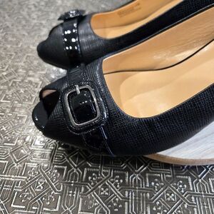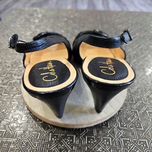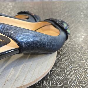 🐢 Cole Haan Black Snake Skin Adjustable Strap Buckle Open Toed Pump 10B