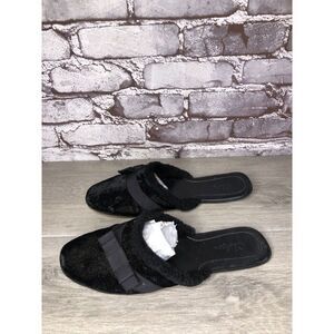 Cole Haan Black Velvet Leather Bow Casual Mules Flats Women Sz 8B US/39EU