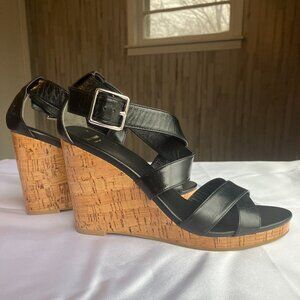 Just a few minor marks on front sole of shoe and indents on heel of wedge.